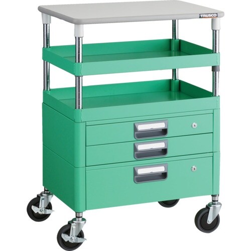 TRUSCO ツールワゴン フェニックスワゴン 抗菌 省音 600X400XH880 引出 天板付 ヤンググリーン