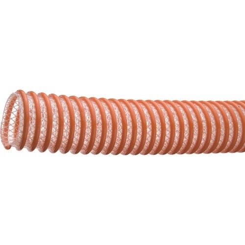 補強糸入りで耐圧性能に優れたサクションホースです。軟質部が透明で内部流体の確認ができます。外面凹凸(内面平滑)で柔軟性に優れています。デリバリー・サクション用。農・漁業用吸送水、土木用吸送水などに。 |