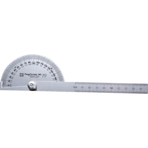 竿部の目盛が端面基準なので、デプスゲージとしても使えます。安心の日本製です。シルバー仕上げのため光沢が少なく目盛が見やすいです。角度の測定に。 |