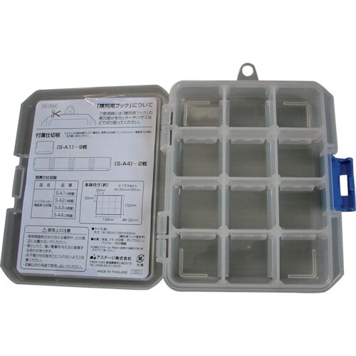 小物類や細かい部品をスッキリと整理できるパーツケースです。用途に合わせて内部空間を自由にレイアウトできる移動式の仕切板付きです。