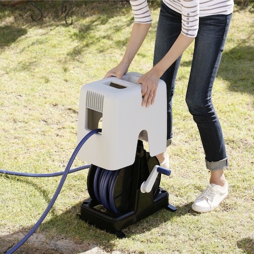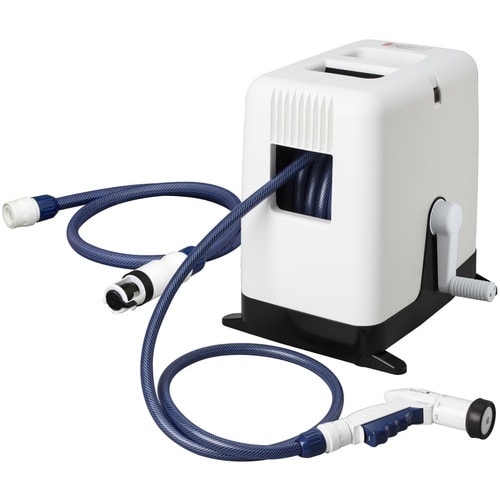| 注意事項 | ※本品は一般家庭での屋外散水用です。それ以外の目的には使用しないでください。使用後は必ず蛇口を閉め製品内部の水を充分に抜いてください。(凍結破損防止・製品保護)井戸水や常温以外の水を使用しないでください。ホースは塩化ビニル樹脂製のため、ホースを通した水に臭いがつく場合があります。水の勢いが弱い場合は、ホースを全て引き出して試してください。 |