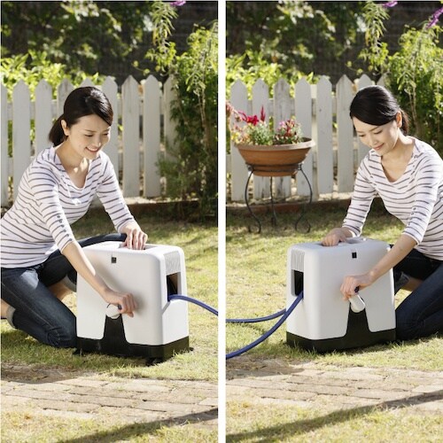 日差しからホースを守る着脱可能なカバー付です。ねじれに強いツイスターホースを採用しています。自由自在の通水エルボによりハンドルの向きを自由自在に変更できます。通水・止水がワンクリックで操作できます。 |