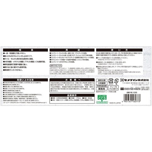 熱や水に強く屋外でも使用可能です。衝撃や振動に強い弾性接着剤です。使いやすい一液タイプです。日本接着剤工業会 JAIA F☆☆☆☆規格品、4VOC基準適合品です。 |