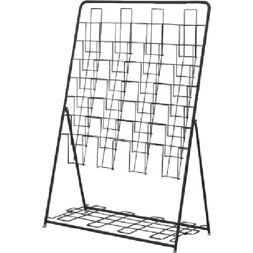 A4パンフレットを7段4列に収納できるパンフレットスタンドです。下のラック部分にはストックが置けます。使わないときは折り畳んでコンパクトに収納をすることができます。 |