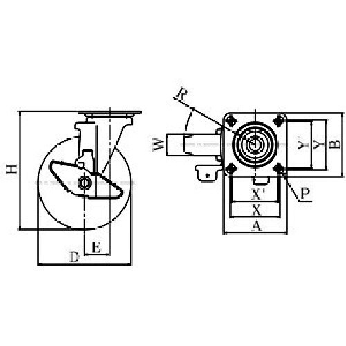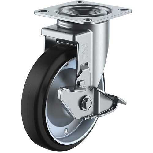 ユーエイ プレート式 自在 キャスター ゴム 車輪径100mm ストッパー付き Jタイプ RJ2−S型 取付寸法71×71(68×68)
