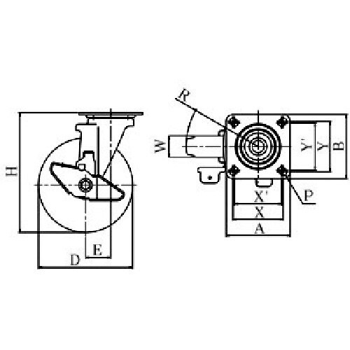 ユーエイ プレート式 自在 キャスター ゴム 車輪径125mm ストッパー付き Jタイプ RJ2−S型 取付寸法80×80(75×75)