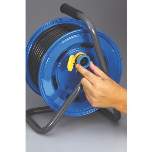 屋外用コードリールです。防雨コンセント4個付です。防雨型プラグ交換カバー「プラグカッパー」を標準装備しています。内部配線部への水の浸入を防ぐ防雨コンセント4個付、屋外用なので雨の中でも使えます。 |