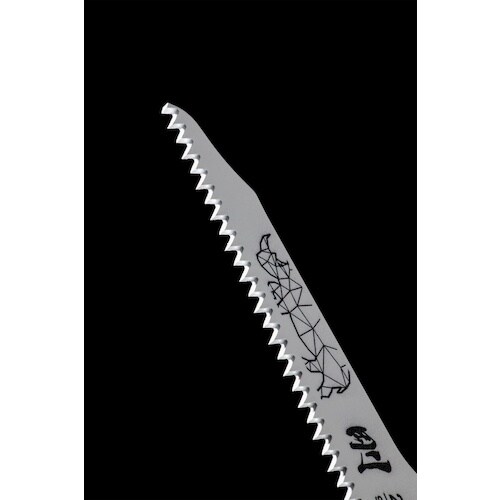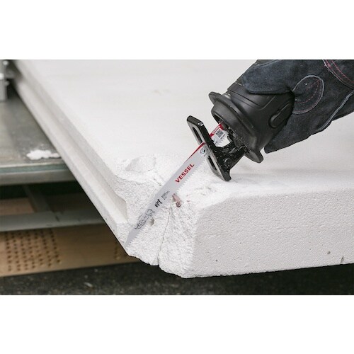 解体作業を重視した、厚刃仕様になっています。釘入り木材などの複合素材に最適です。コバルトハイス鋼とバネ鋼のバイメタルを使用、刃の耐久性に優れています。ホルダー装着時に引っ掛かりがない角R形状です。 |