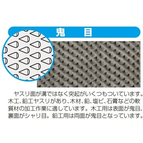 両面が鬼目です。目が粗いので目詰まりしにくいのが特徴です。平、半丸、丸の3本セットです。木製ハンドル付きの使いやすいヤスリです。木もしくは、ソフトメタルに。 |