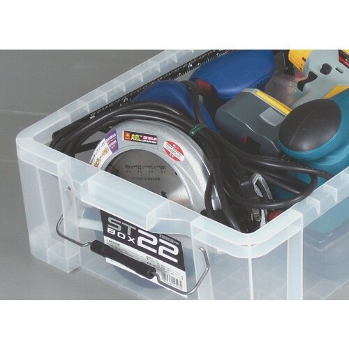 スタッキング(積み重ね)でき便利です。(当社品番#13,#25)長さを測れるフタに35cmまでの便利な目盛り付です。工具や大工道具、アウトドア用品などの収納に便利。 |
