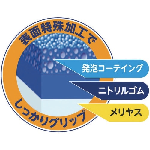 耐油性に優れたニトリルゴム手袋です。表面の発泡コーティングで柔らかさとグリップ感を持たせました。 |