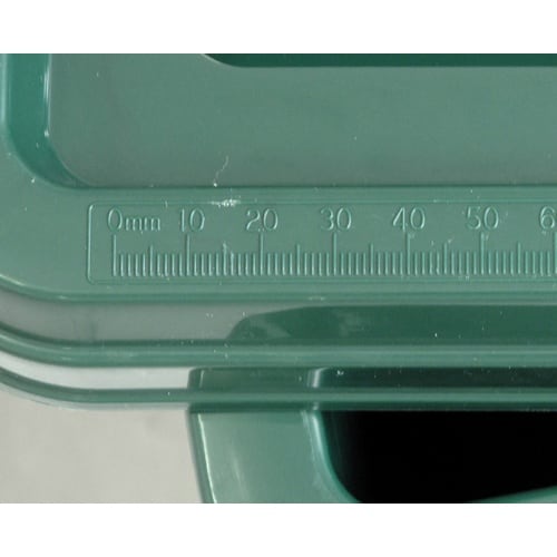 スタッキングでき便利です。フタに15cmまでの目盛り付です。 |
