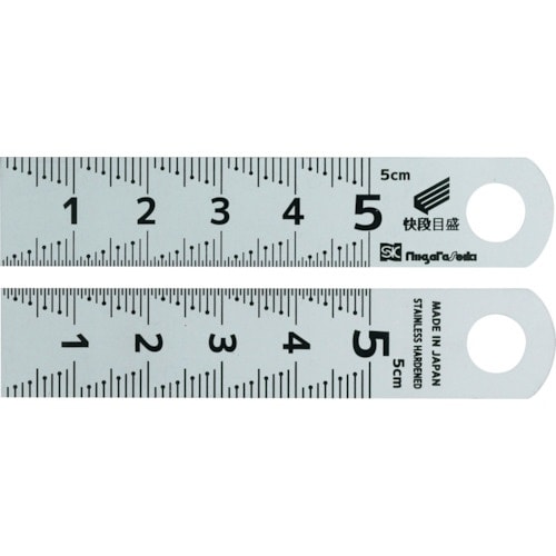 新設計の快段目盛で、ミリ単位の読み間違いを防ぎます。サビに強いステンレス材です。大きく、スッキリと数字が表示されているので数値が読み取りやすいです。スケール表面は目盛が鮮明に見えるシルバー仕上げです。 |