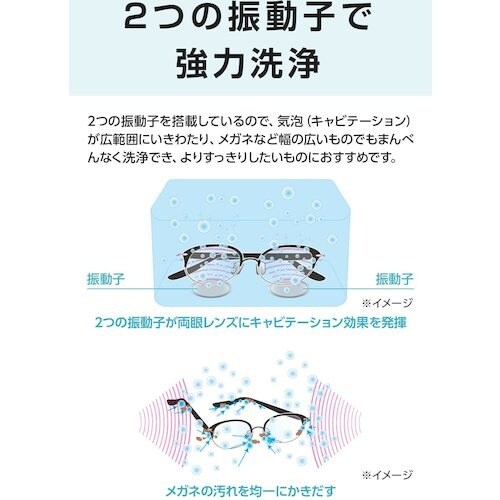 大きな洗浄洗濯槽でメガネもらくらく洗浄できます。 |