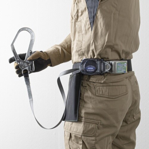 ロック機能なしのシンプルな巻取器式ランヤードです。スチール製のフックを採用しています。装着しやすいワンタッチバックル付きです。 |