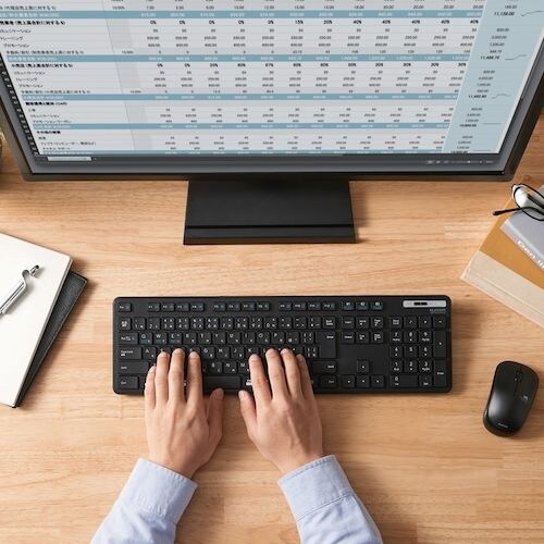 ELECOM Bluetoothフルキーボード 薄型 メンブレン式 抗菌 マルチペアリング対応 ブラック