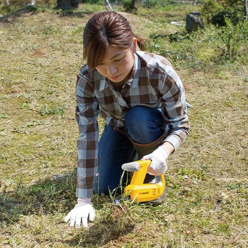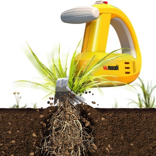 雑草を強力な振動で震わせて根こそぎ抜くことができます。根ごと抜くので草が生えません。薬品や鋭利な刃を使わないので安全に使えます。 |