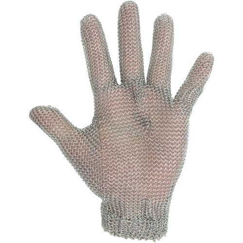 抜群の耐切創強度があります。金属探知機反応タイプのステンレス製です。ステンレススプリングのリストバンドにより、衛生的でかつ抜群の耐久性があります。色分けにより、サイズ分別が容易です。 |
