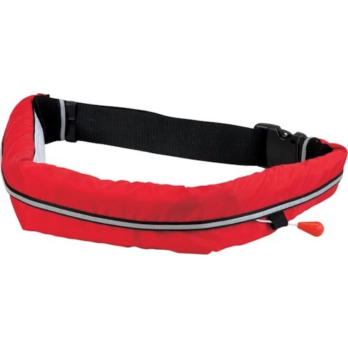 手でヒモを引いて膨張させるタイプです。小型船舶用法定備品として。水に濡れる状態が想定される場所での使用に。 |