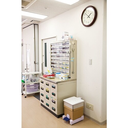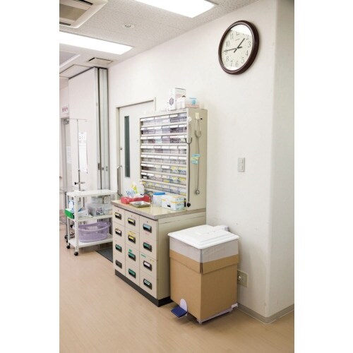 容器に合わせて幅・奥行・高さが変えられる、医療廃棄物容器ホルダー。 |