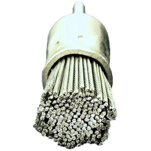 ホイール・カップ・ベベル型で処理できない狭い箇所に最適です。コーナー部やL字型箇所の錆落し、溶接後のスケール除去に使用されます。硬鋼線を亜鉛メッキしてヨリ加工をした毛材です。 |