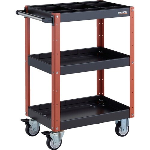 TRUSCO ツールワゴン イーグルワゴン 600X400XH880 深型3段 1段仕切板付 ウレタン車輪 ブラック/オレンジ