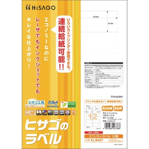 ヒサゴ HISAGO エコノミーラベル 12面 A004-6481