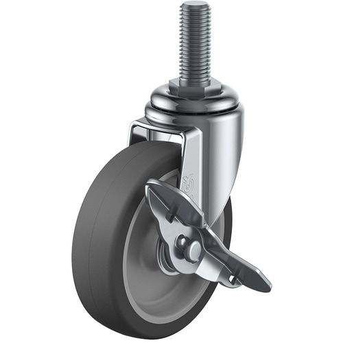 ユーエイキャスター ユーエイ ねじ込み式 自在 キャスター エラストマー 車輪径100mm ストッパー付き Eタイプ ET−S型 ネジ寸法M12×35ピッチ1.75 A004-6805