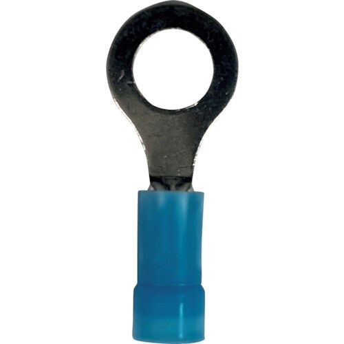 ビニールの絶縁被覆のついた丸形圧着端子です。電線の接続に。