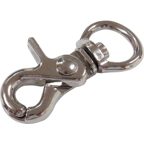 開口部の広がりが広いスナップです。アイの部分が回転するので、チェインなどのよりとりになります。チェイン・ワイヤーロープの先端金具、連結金具。 |