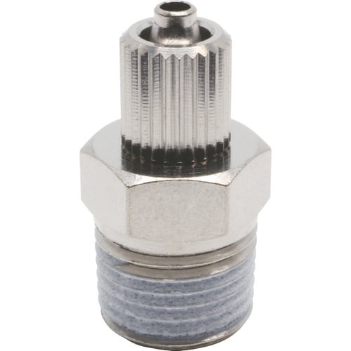 適合チューブ外径(mm):4 | 接続口径:R1・8 | 六角対辺(mm):10 | 全長(mm):20.5 | 流体温度(℃):0〜50(凍結なきこ…