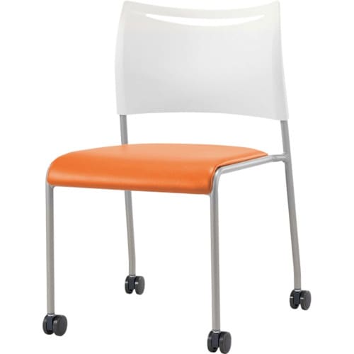 二重クッションを採用した4本脚のキャスター付チェアです。背面部の角がフックになります。 |