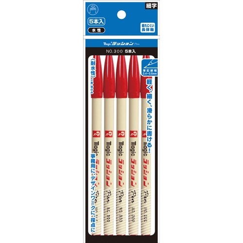 | 注意事項 | ※落としたり、激しく振ったりするなどの衝撃を与えるとインキが飛び出したり、漏れたりする場合がありますのでご注意ください。水性インキですが、衣服などにインキが付くと落ちにくい場合がありますのでご注意ください。使用後は必ずキャップをしめてください。直射日光や高温になる場所を避けて保管してください。 |