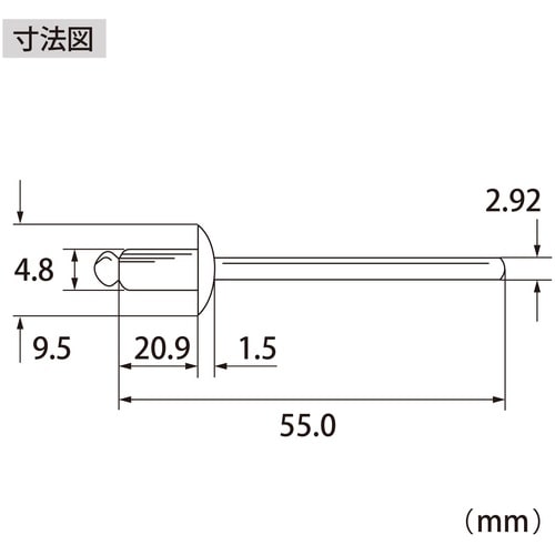 | 注意事項 | ※適正かしめ板厚、下穴径は当社指定寸法を守り安全率を十分に考慮して施工してください。作業前に必ず、ご使用になるリベッターの取扱説明書をよくお読みください。寸法・重量などは公称値ですので、多少の数値の上下があります。 |