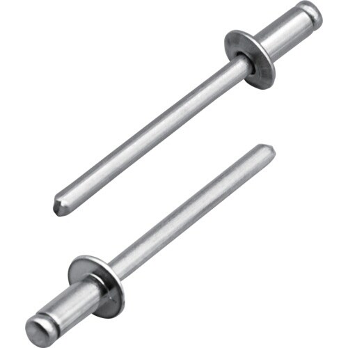 マンドレルもボディもアルミニウム製の軽量ブラインドリベット耐食性にすぐれ、錆びを嫌う場所に最適手に優しいマンドレル先端形状片側から複数の母材をワン・アクションで締結できます。自動車板金、電機板金など。 |