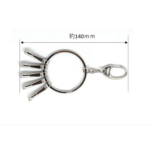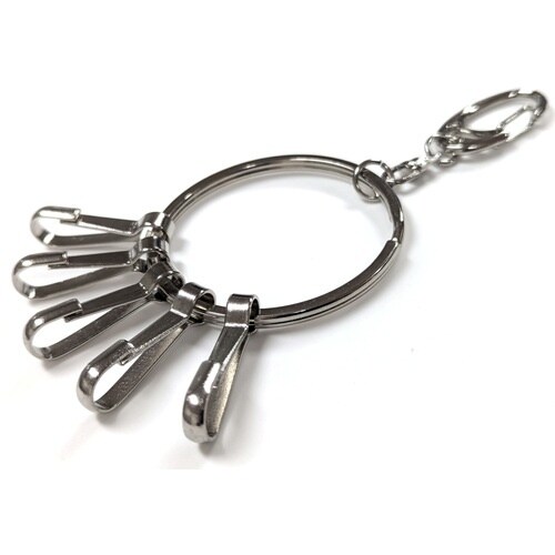 リングの中にスナップが5個付いており、取り外しが容易に行えます。キーホルダーに。 |