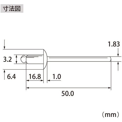 | 注意事項 | ※適正かしめ板厚、下穴径は当社指定寸法を守り安全率を十分に考慮して施工してください。作業前に必ず、ご使用になるリベッターの取扱説明書をよくお読みください。寸法・重量などは公称値ですので、多少の数値の上下があります。 |