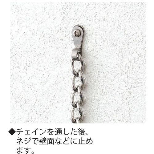 チェインに挟み込み、簡単にビス止めできます。物の吊り下げ、引っ掛けとして。