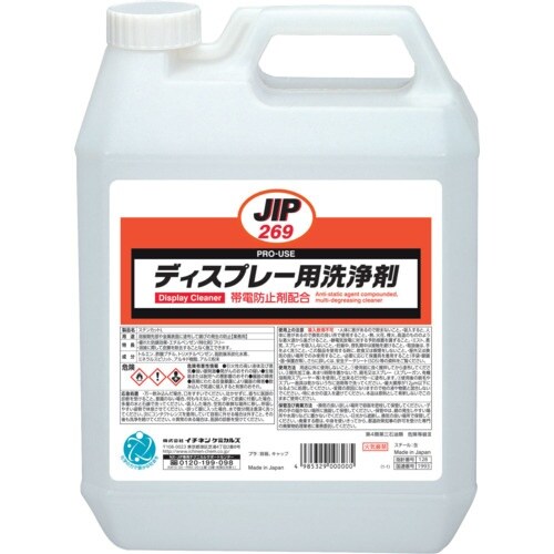 帯電防止剤配合・マルチ脱脂洗浄剤ディスプレーパネル面やガラス面の指紋や汚れを簡単に除去できます。速乾性でパネル面やガラス面の拭き取りムラがなく、白残りがありません。 |