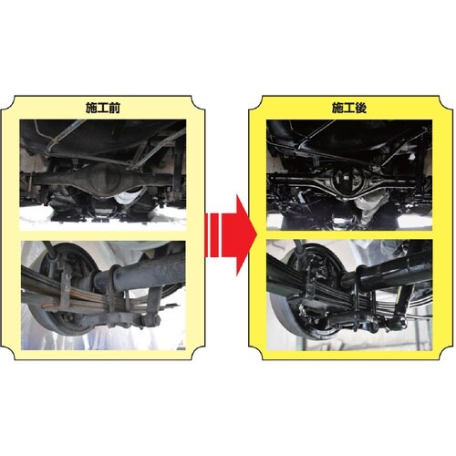 艶も錆止めも両立、下回りを美しく仕上げます。磨かれたピアノのような光沢に仕上がります。硬く膜厚のある塗膜が下回りを美しく守ります。耐チッピング性能に優れます。塩水噴霧試験300時間合格。