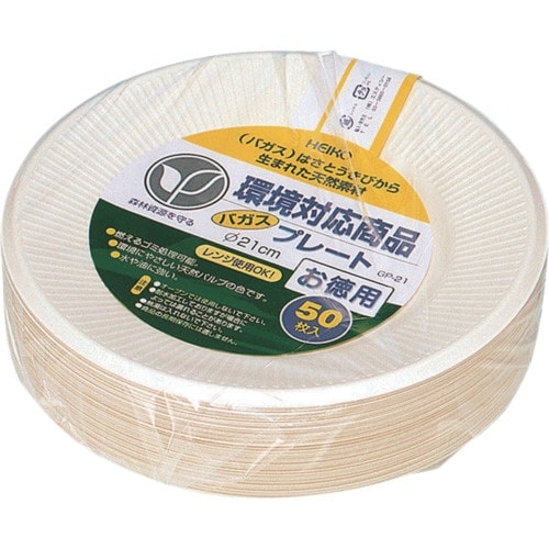 サトウキビの搾りカスから精製された非木材系の天然パルプ「バガス」を使用した環境配慮型のペーパーウェアです。燃えるゴミとして処理できます。プレーンな丸皿タイプ。 |