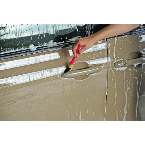 大小で異なる毛材を採用し、エンブレムやボディの隙間などスポンジでは届かない細部まで徹底洗浄できるボディ専用の洗浄ブラシです。 |
