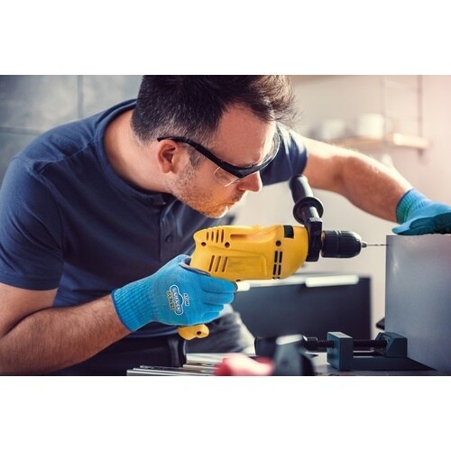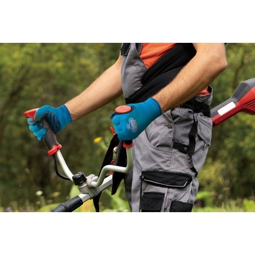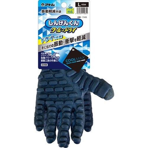 振動軽減効果のあるスポンジ樹脂を掌に張り合わせた作業手袋です。クールマックスを使用しており、速乾性と清涼感のある仕様となっています。指先にタッチパネル操作対応の繊維を入れています。 |