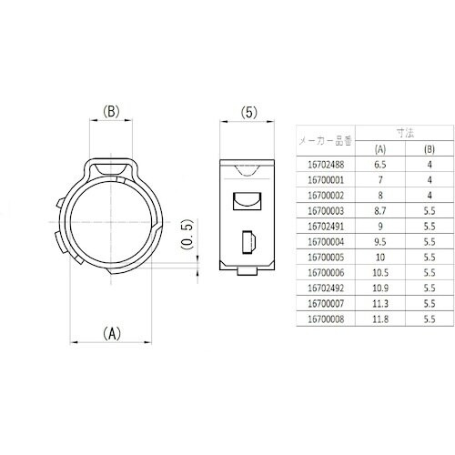 最大径(mm):11.3 | 最小径(mm):9.6 | バンド幅(mm):5 | 厚さ(mm):0.5 | 最大推奨加締め荷重(N):1000 | …