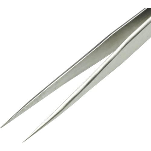 ストレートタイプのピンセットです。先細なので精密作業に適しており、微細なパーツも容易につかめます。先端部の保護キャップ付きです。錆にくいステンレス製です。 |