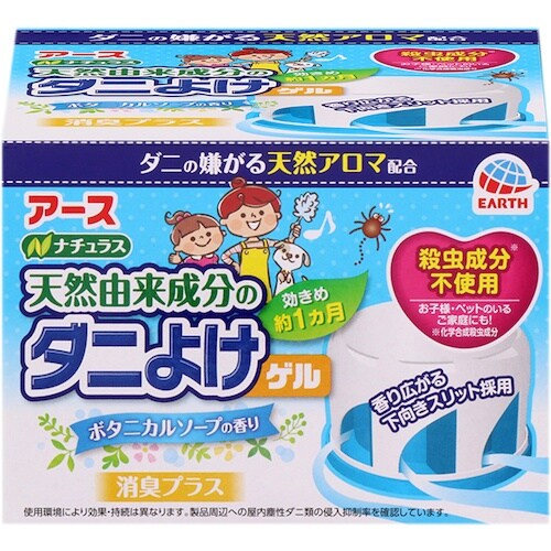 殺虫成分を使用していないので、ペットやお子様のいるお部屋でも安心して使えます。低位置スリットだから、ダニのイヤがる5種の天然成分がダニの住処である床面に広がります。倒れても安心なゲルタイプです。 |