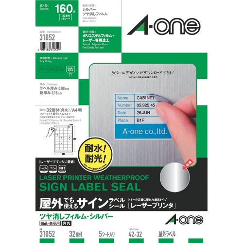 3M エーワン 屋外用サインラベル(レーザー)ツヤ消しシルバー 32面 (5枚)