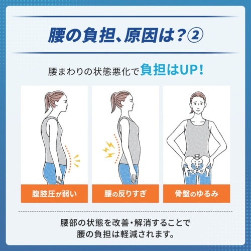 前合わせ部と背当て部の両方に硬質メッシュ生地を使用しています。背中側だけでなく腹部側からもしかりホールドし、腰への負担を軽減します。S字軽量ステー(支柱)で腰が反りすぎないように抑制します。 |