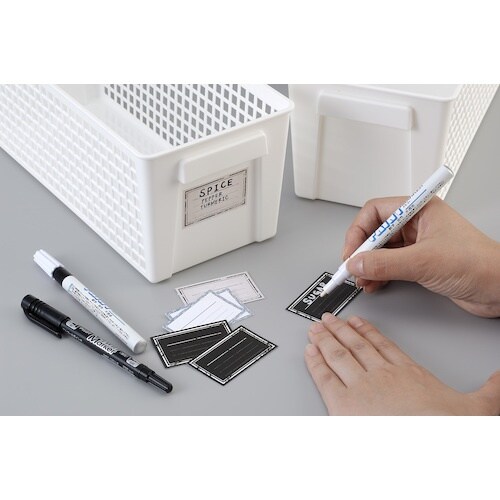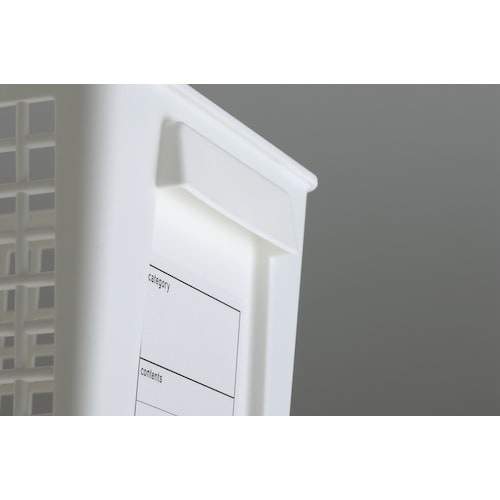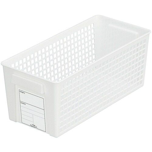 取っ手付きだから取り出しやすいバスケットです。ラベル表記でスマートに整理整頓できます。 |