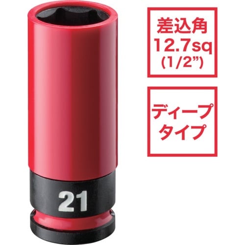 milwaukee SHOCKWAVE IMPACT DUTY ホイールナット用インパクトソケット 1/2インチ(12.7mm)角 21mm(赤)